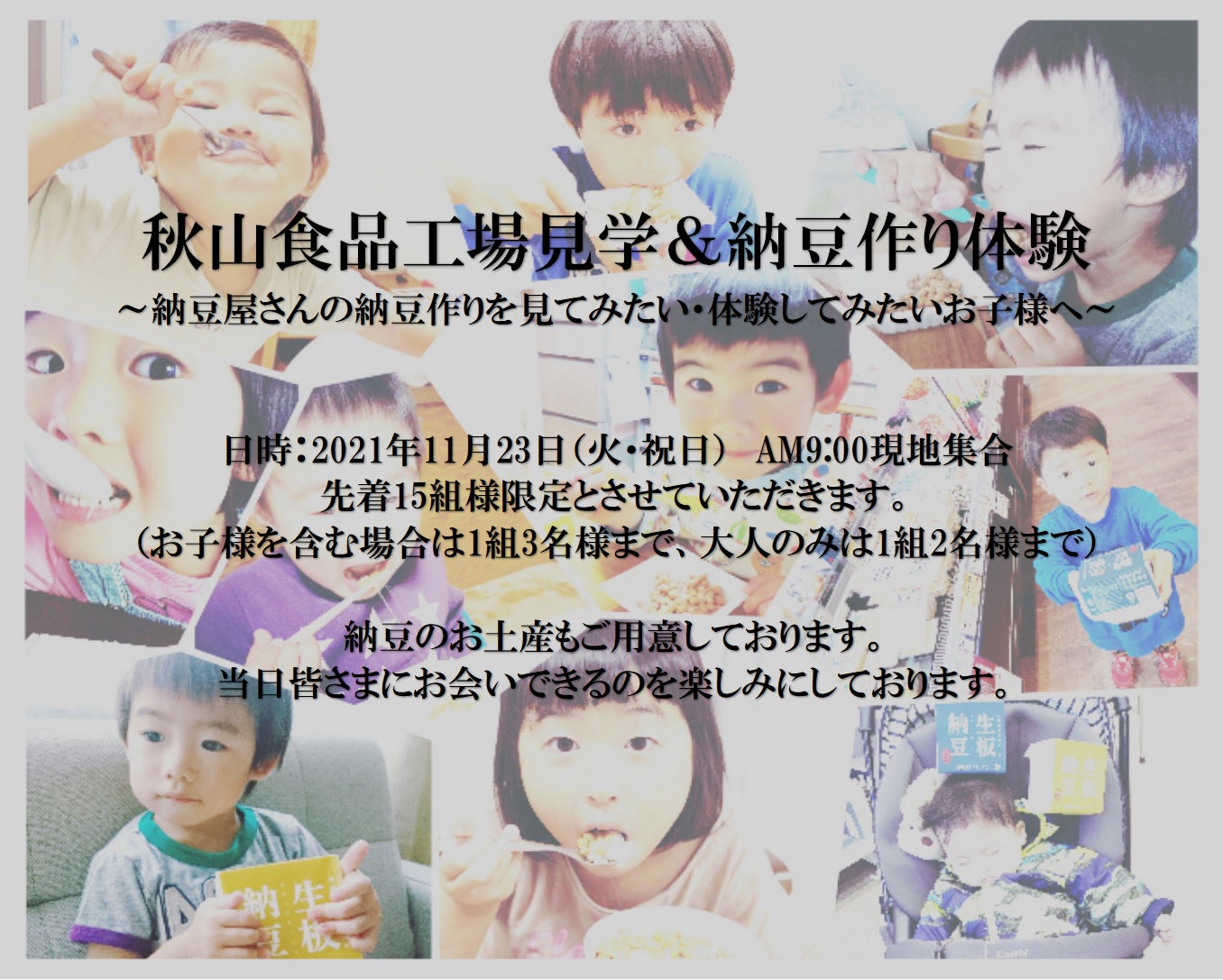 【秋山食品工場見学&納豆作り体験】(最寄駅からのバス送迎・納豆のお土産付き)1組様分