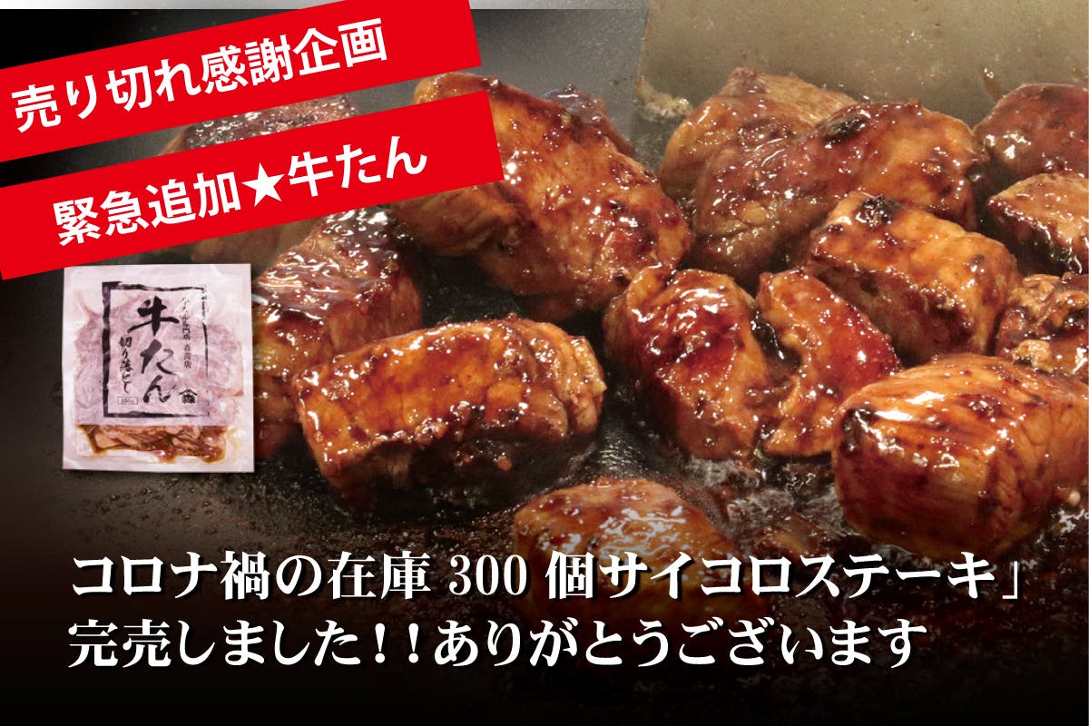 行き場を失っていた サイコロステーキ在庫300個は開始早々に売り切れました。ご協力ありがとうございます。