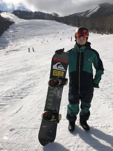 また国内ではプロ大会を転戦しスノーボードスクールにも所属しています。