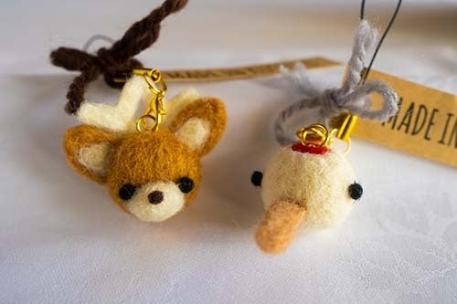 2年ほど前から趣味として始めた羊毛フェルト。ノロッコ号からよく見られる”ツル”と”シカ”を作って車両カウンターに飾ってみたところガイドさんやお客様から「かわいい!」と評判になり、そこから商品として販売することになったそうです。」
