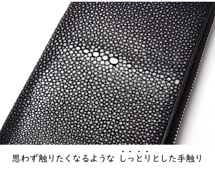 魚のエイは英語ではスティングレーと呼ばれています。「泳ぐ宝石」と言われ、素材としてはとても硬く、古くは武士が持つ日本刀の柄にも使われていました。実はエイはラッキーフィッシュとも呼ばれており縁起のいい魚なのです。ですのでスティングレイを使用した財布は金運アップにも繋がると言われており とても人気があります。