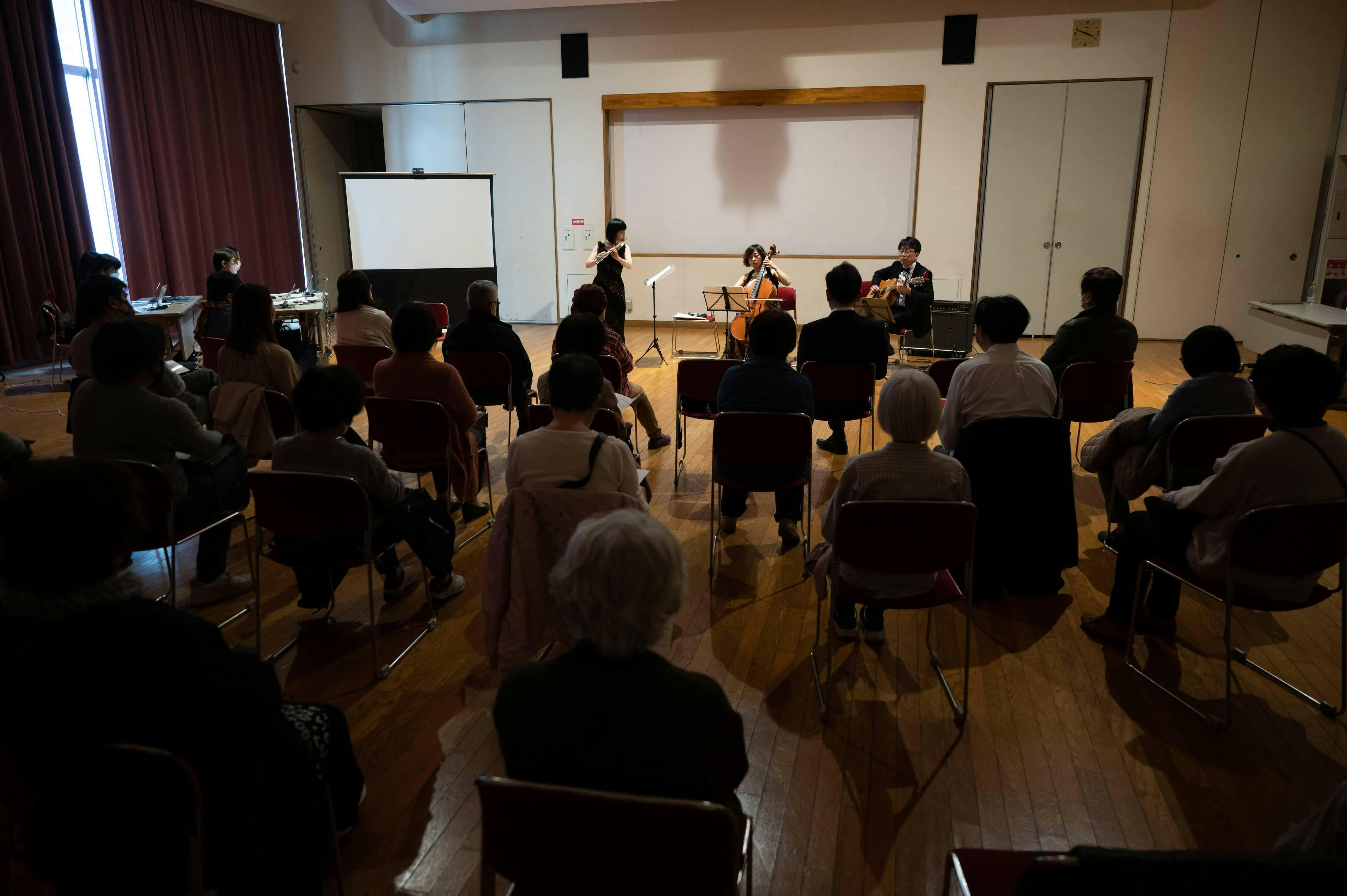 フルート、アコースティックギター、カホン、歌による30分のコンサートです。