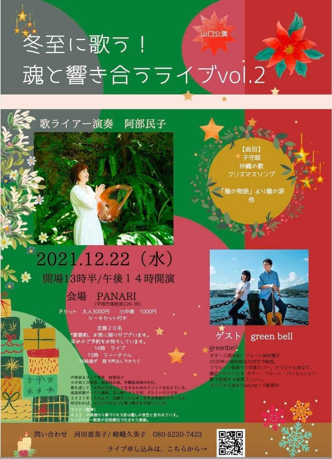 声楽家&ライア奏者の阿部民子さん主催『冬至に歌う!魂と響き合うライブvol.2』にゲスト出演させていただきました☆☆