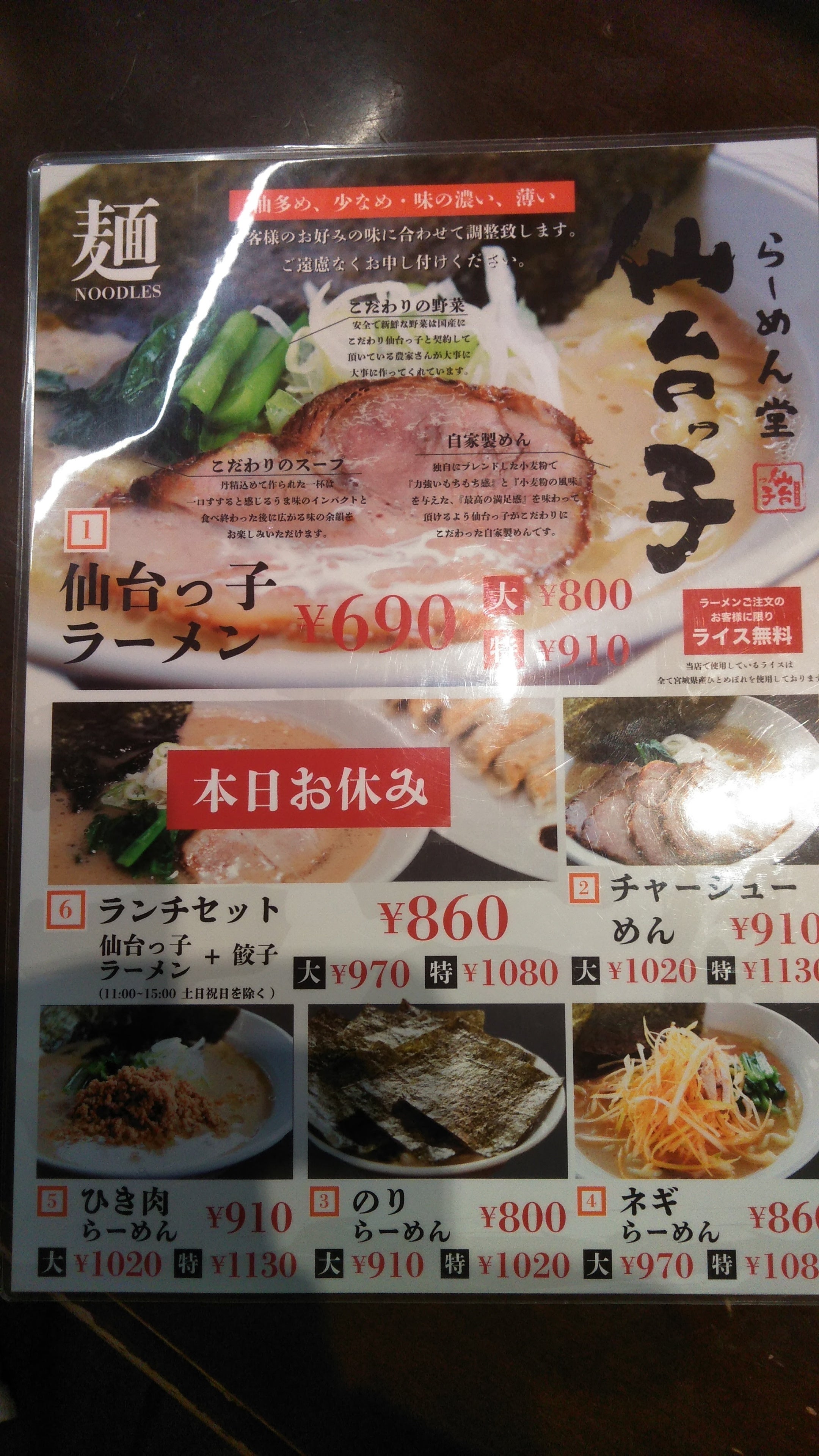 どのラーメンも美味しいそうですが、ここはスタンダードの仙台っ子ラーメンをいただきました!