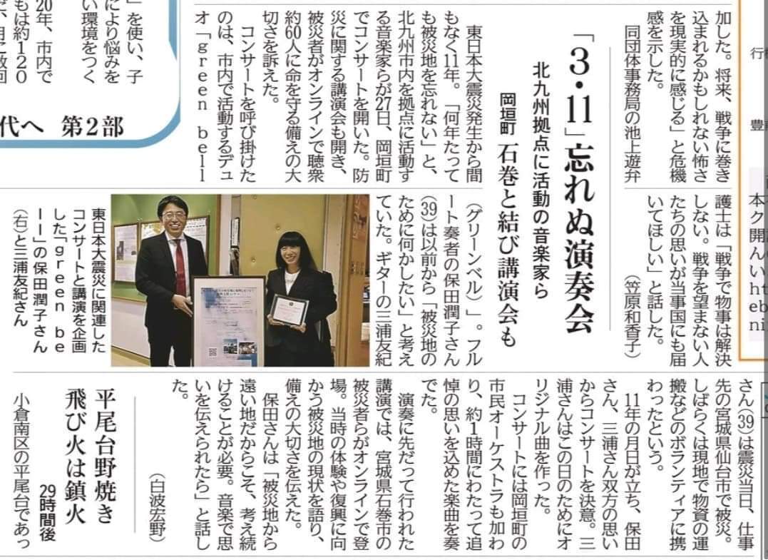 『東日本大震災の被災地と福岡とをつなぐ復興支援コンサート』を応援してくださった皆さま