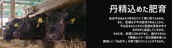 仙台牛は、ふるさと宮城の自然の恵みを体いっぱいに吸収することで、口当たりがよく、柔らかな食味が特徴です。格付けのもと、5等級という一定の規格を保った「仙台牛」をぜひお試しください。
