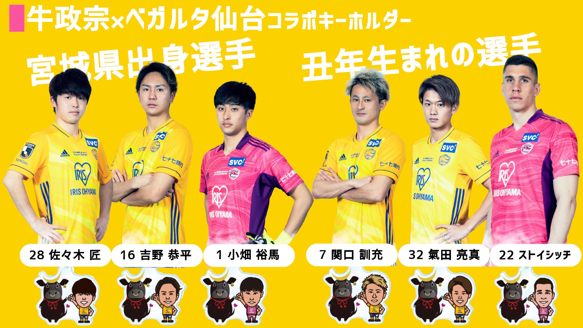 ・ベガルタ仙台選手イラスト×牛政宗コラボキーホルダー(全6種類)