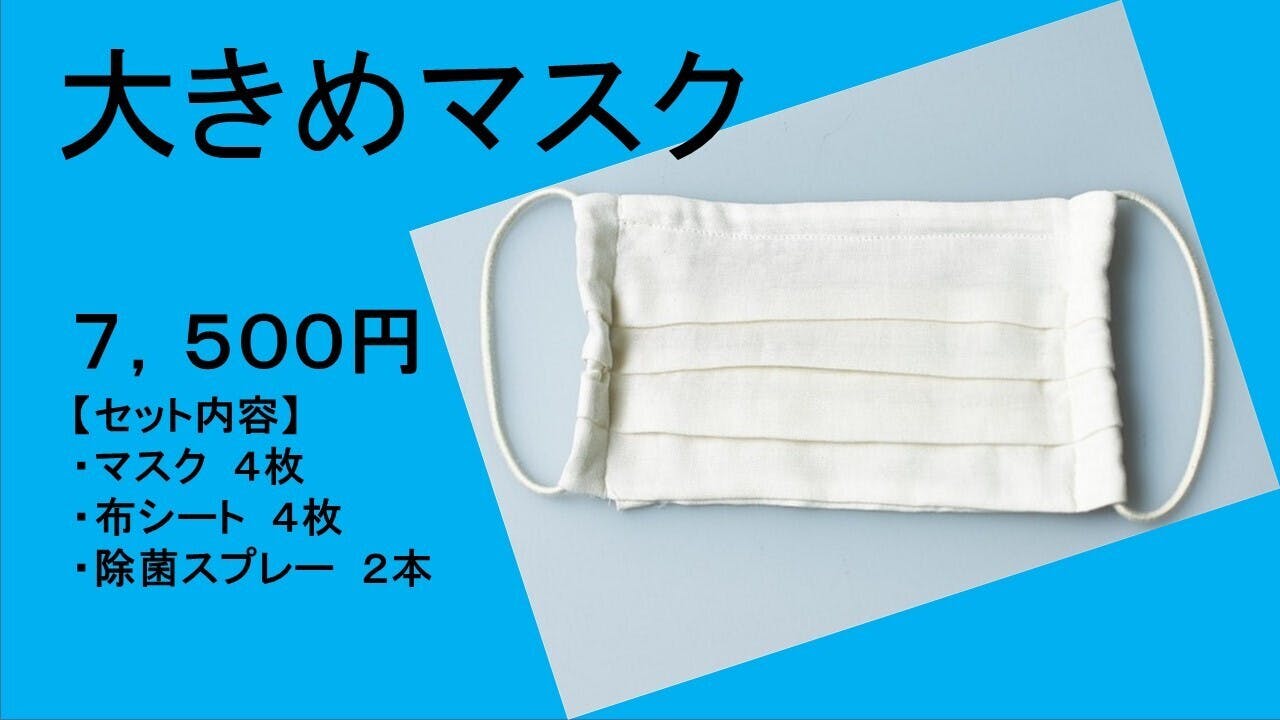 日常的にマスクをすることが多い昨今、市販のマスクでは小さすぎる、生やしている髭がありマスクがしにくいというお声をいただき大きめのマスクを作りました。