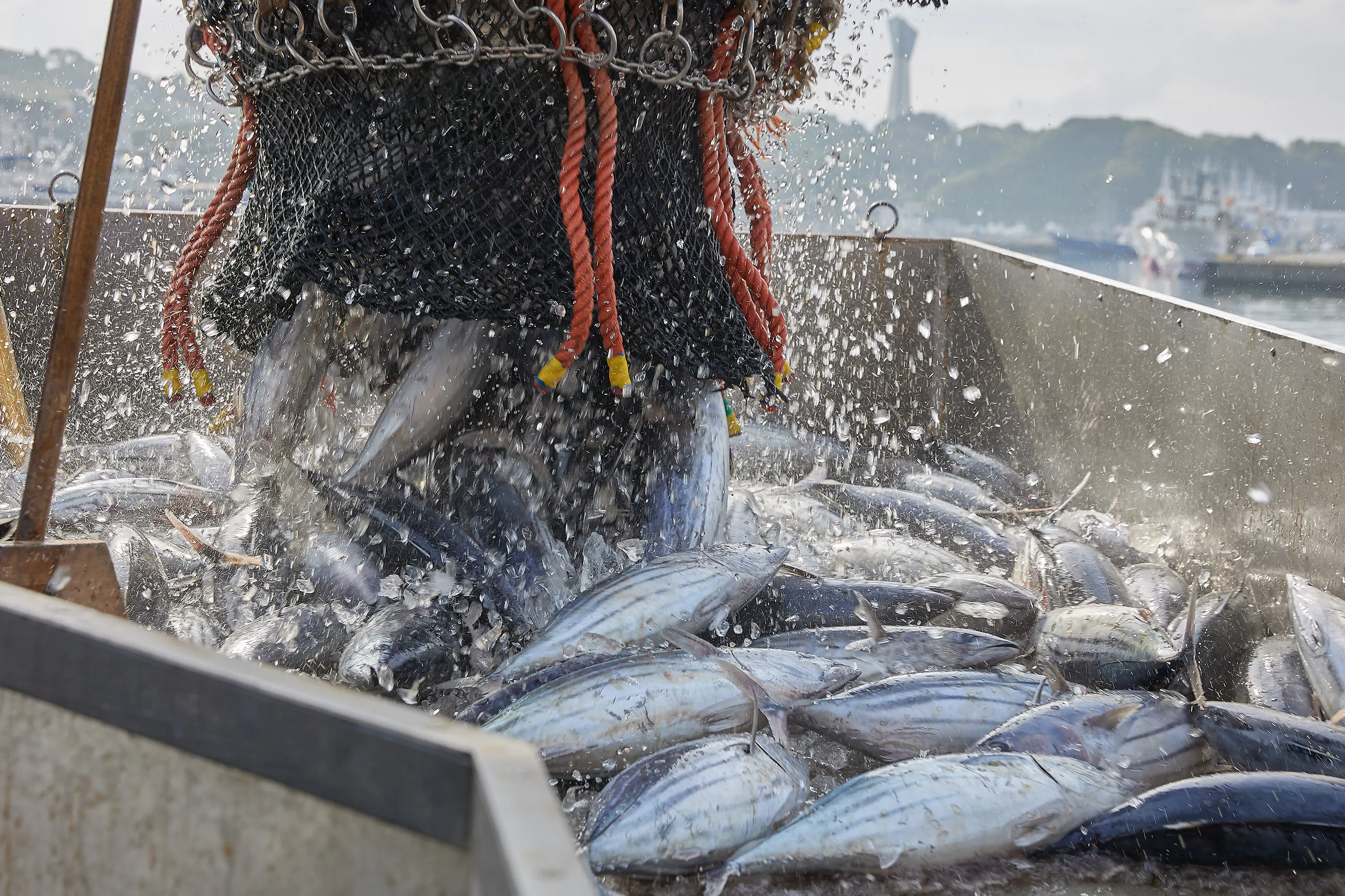 カツオの初水揚げの瞬間(いわき市)