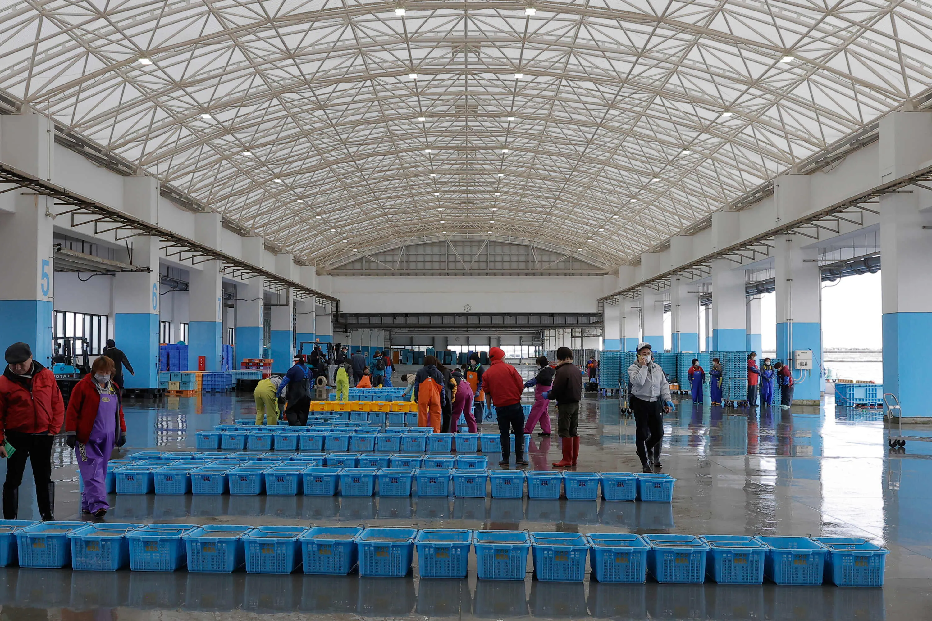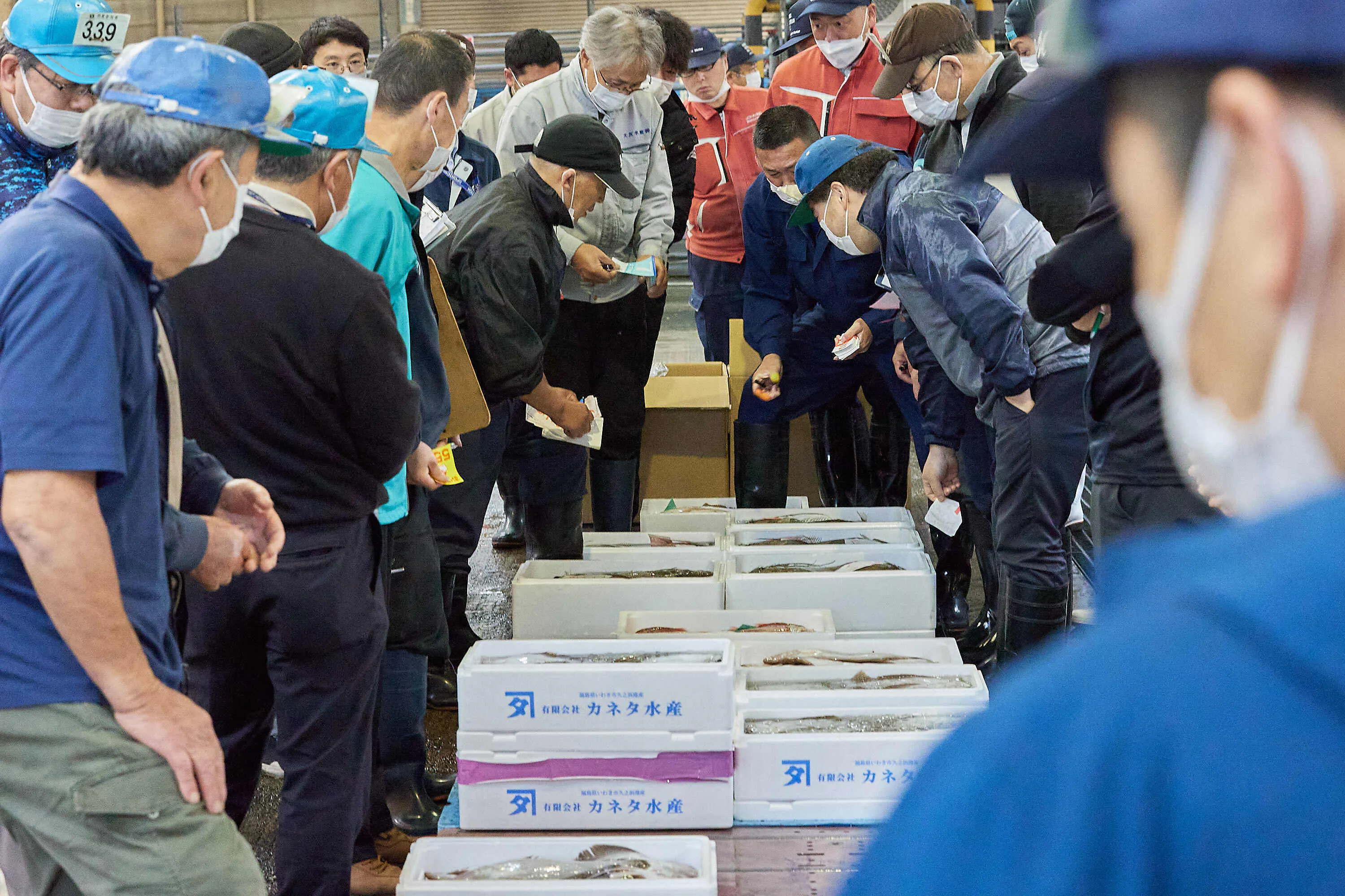 相馬原釜地方卸売市場での入札(相馬市)