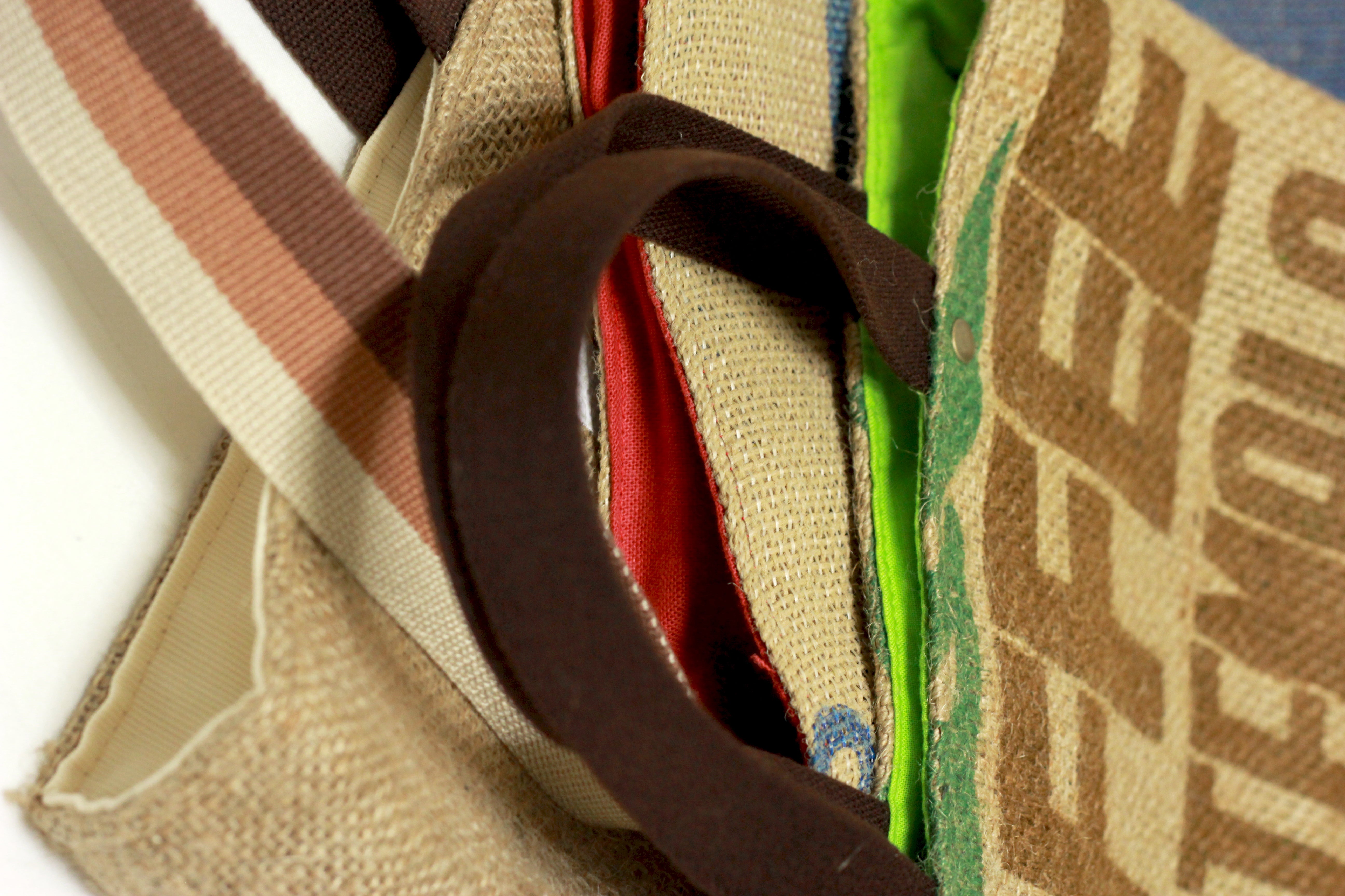 その表情をできるだけ残して何か別のものにできないだろうか。ありきたりかもしれませんが、私は鞄作りをしている同級生に相談し、麻袋の表情をできるだけ活かせる大きさや形を実現したものが、RE:ARTHのエコトートです。