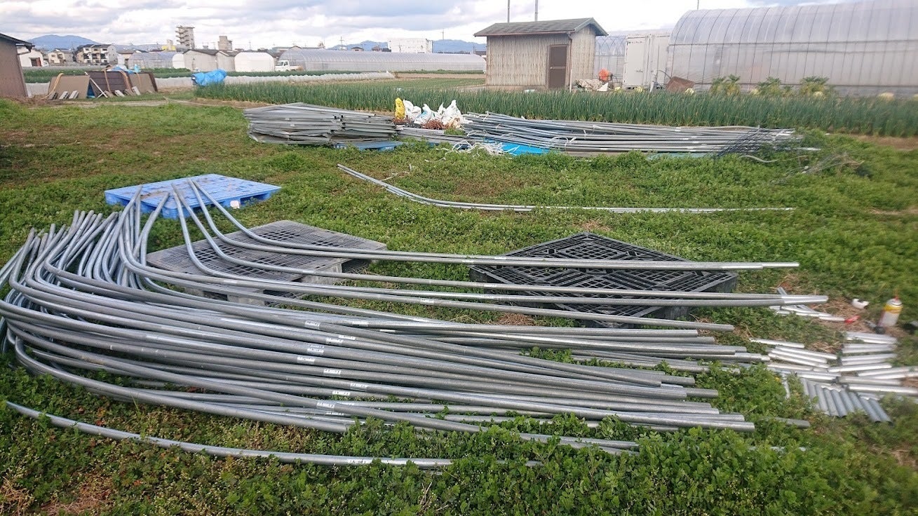 台風によりパイプにねじれが生じていたため、ちょっとずつ修正しました