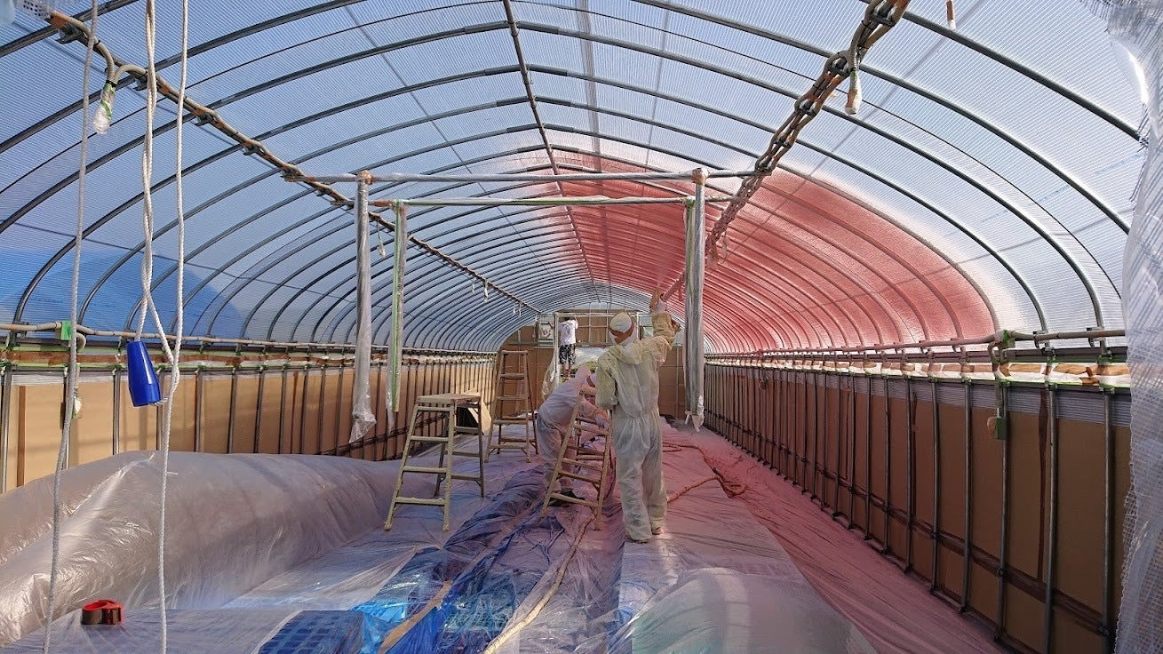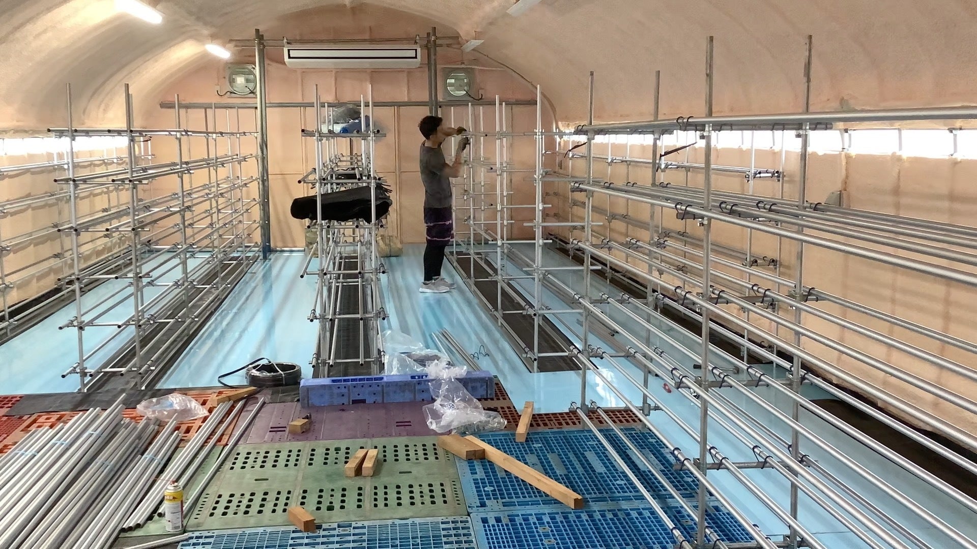 電気工事やエアコン、断熱工事などは自分ではできないので業者さんに依頼し、パイプハウスの建設や床面の設置、栽培棚の設置を自分で進めていきました。