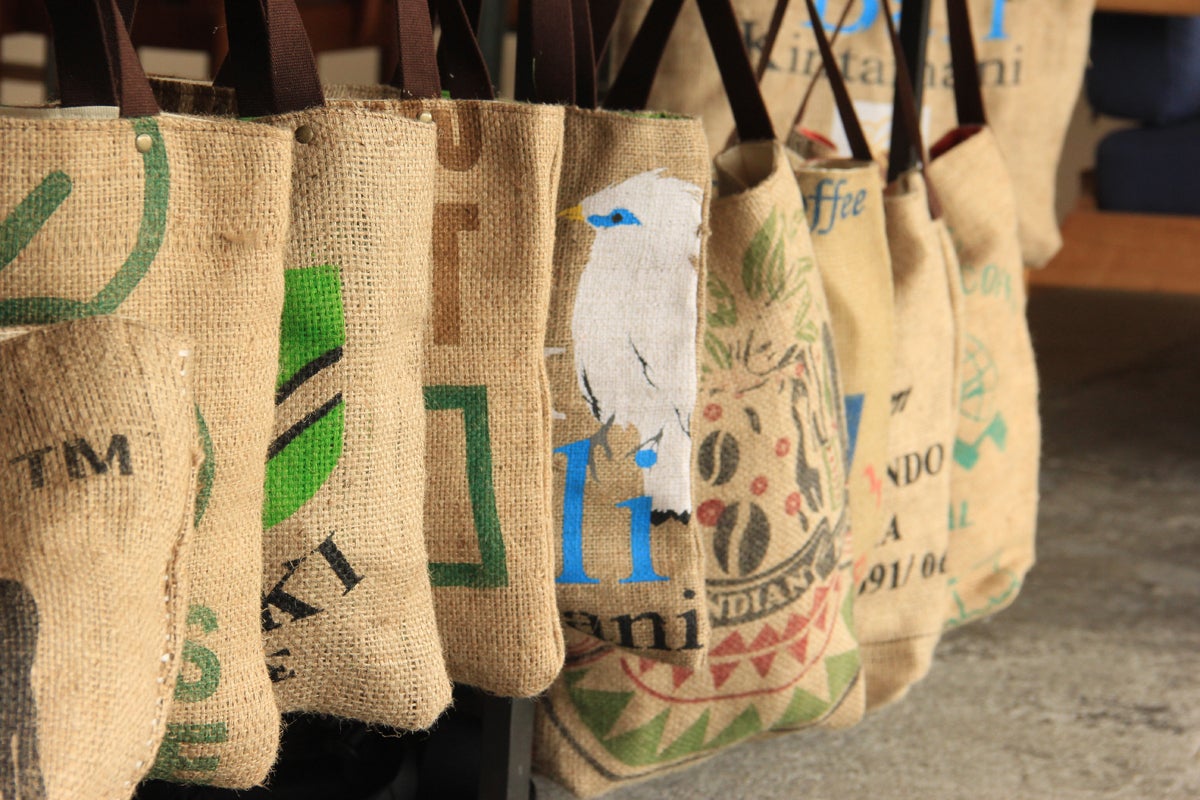 RE:ARTHのエコトートは、コーヒーを使ったキノコ栽培の実験に取り組む中で、ご協力いただいていたコーヒーの焙煎事業者様(現在の麻袋提供者様)からいただいた一言がきっかけで生まれました。