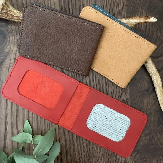 ジビエレザーを贅沢に使用した手触りの良いお財布です。大きめに作っていますので通帳も入りちょっと銀行へというときにとても便利。