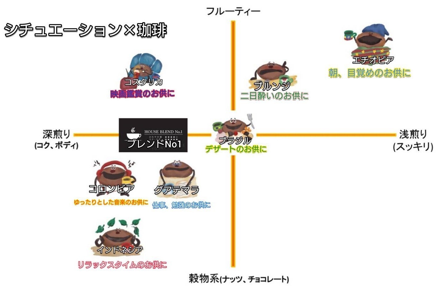 それぞれの珈琲に対して「デザートを食べている時には○○」「リラックスしたい時には○○」など