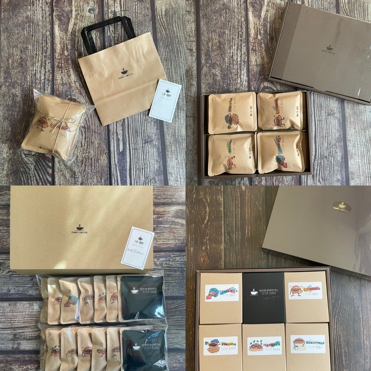 内容:エチオピア(朝目覚めのお供に)×4+ブルンジ(二日酔いのお供に)×4+ブラジル(デザートの共に)×4+コスタリカ(映画鑑賞のお供に)×4+グアテマラ(仕事、勉強のお供に)×4+コロンビア(音楽のお供に)×4+インドネシア(リラックスのお供に)×4+クラウドファンディングブレンド×4