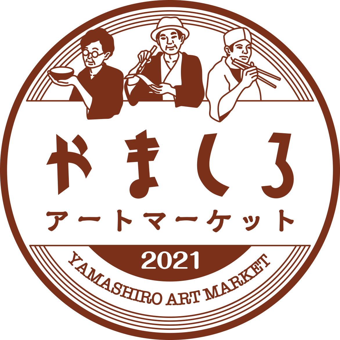 ロゴタイプは平野甲賀氏のフォントを採用し、旦那衆のイラストは左から「クラフト」「アート」「食」をイメージして描いていただきました。やましろアートマーケットが「北大路魯山人の才能を見出して支援した旦那衆のような存在になれるように」という願いを込めたロゴマークです。