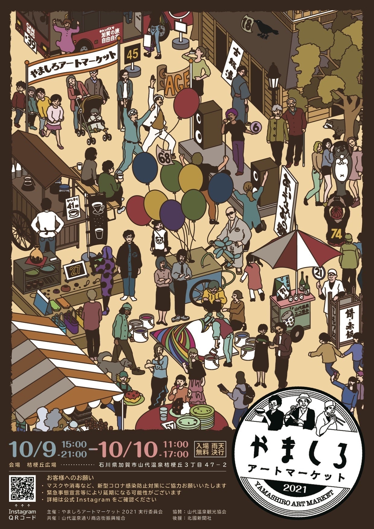 2021年10月9日(土)・10日(日)の二日間、北陸有数の温泉地であり、北大路魯山人や伝統工芸品である九谷焼のルーツがある「山代温泉」にて、アートとクラフトの祭典「やましろアートマーケット」を今年も開催いたします。