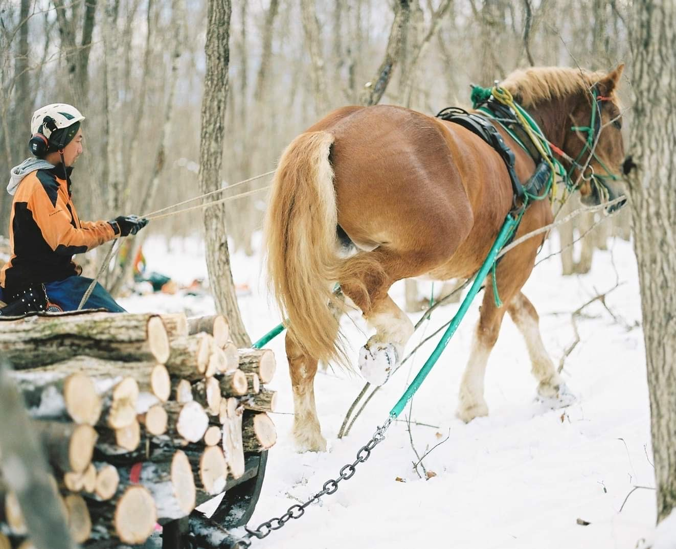▲厚真町で「馬搬」という手法で林業にチャレンジしている西埜さん