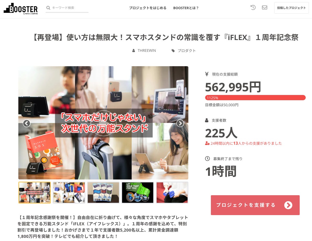 皆様この度は『iFLEX1周年感謝祭』のプロジェクトにご興味をお持ち頂きまして、誠にありがとうございます!お客様投票で人気のコンビセットを数量限定で、1/9(日)12時に追加リターンを公開させて頂きます。この機会にご自宅用、携帯用と使い分けをして頂き、様々な使い方をして頂けますと幸いです。チームメンバーは、年末年始に実家に帰省した際にカーナビが古かったので、スマホをカーナビがわりにし、そのスタンドにiFLEXを使った所、安定して使いやすかったとのことでした。あなただけの使い方を是非、見つけて下さい!プロジェクトページへhttps://camp-fire.jp/projects/view/533967引き続きより多くの方々にiFLEXをお届けできように頑張りますので、SNSなどでの拡散にご協力を頂けますと幸いです。引き続き、宜しくお願い致します。iFLEXプロモーションチーム一同