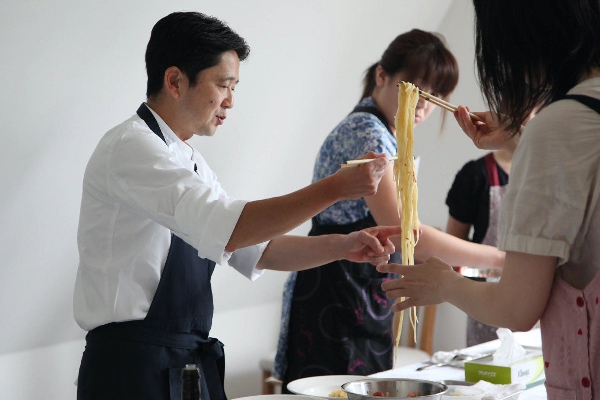 『予約の取れない料理教室』シリーズとして書籍化された人気の料理教室。私の料理教室の特徴は、6人1クラスで大きなテーブルを囲んで僕と一緒に料理のコツや背景を伝えながらの質疑応答、時には雑談をしながら家庭で作れるイタリア料理をみなさんと作り上げていましたが、2015年を最後に店舗が忙しくなり休講していました。