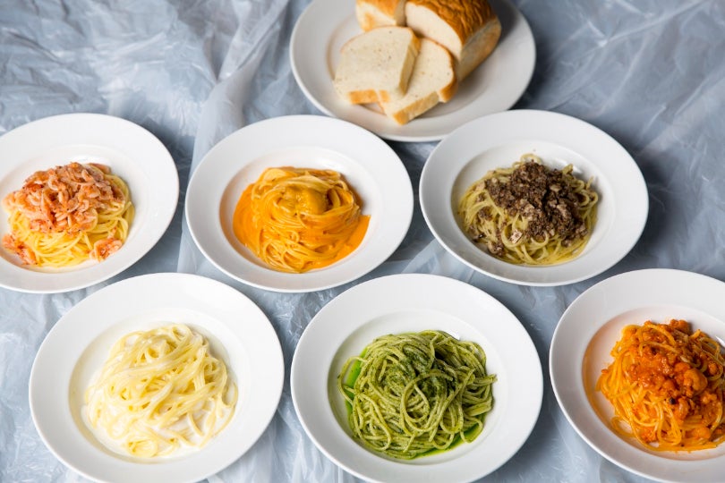 パスタソースは人気のウニのトマトクリームソースをはじめ、クワトロフォルマッジョやジェノベーゼ、エビ・イカ・タコのトマトソース、季節限定のパスタソースなど常時7種類をご用意しています。