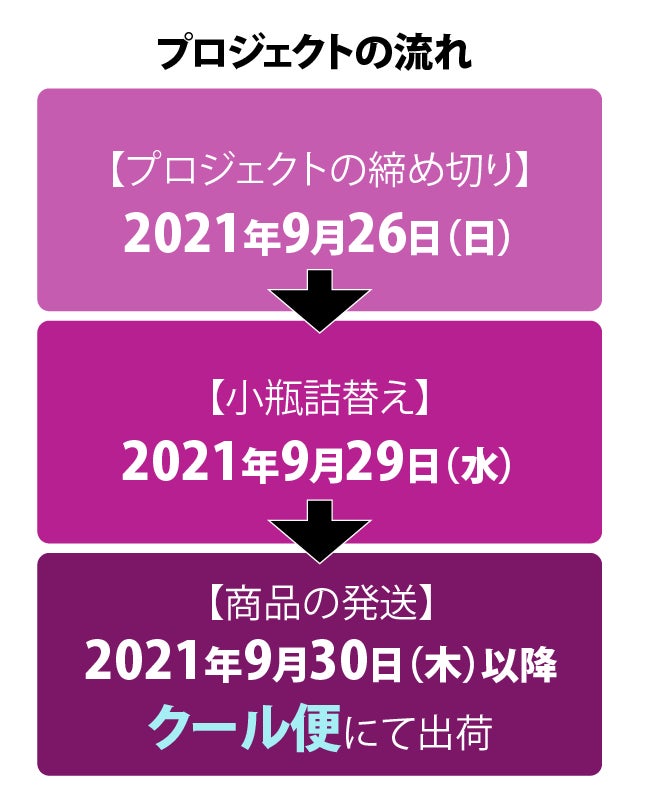 ▸ ワインは発送日直前に詰め替え、出荷までは14℃に保たれた自社セラーに保管し、クール便にてお届けします。詳しくは、「小瓶詰め替えとお届けスケジュール」 をご確認ください。