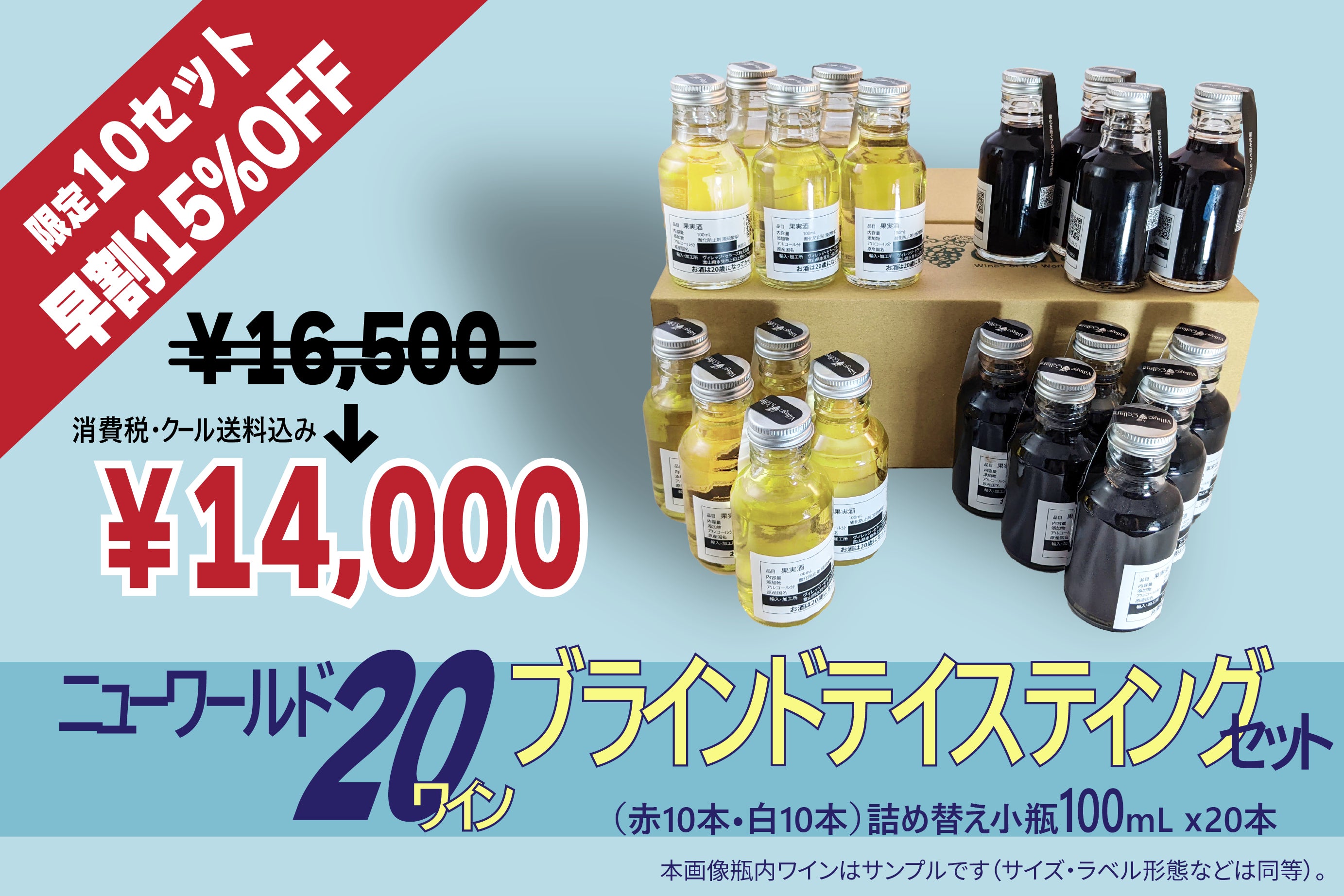 内容:ニューワールド20ワイン(赤白各10アイテムずつ)各100mL ×20本