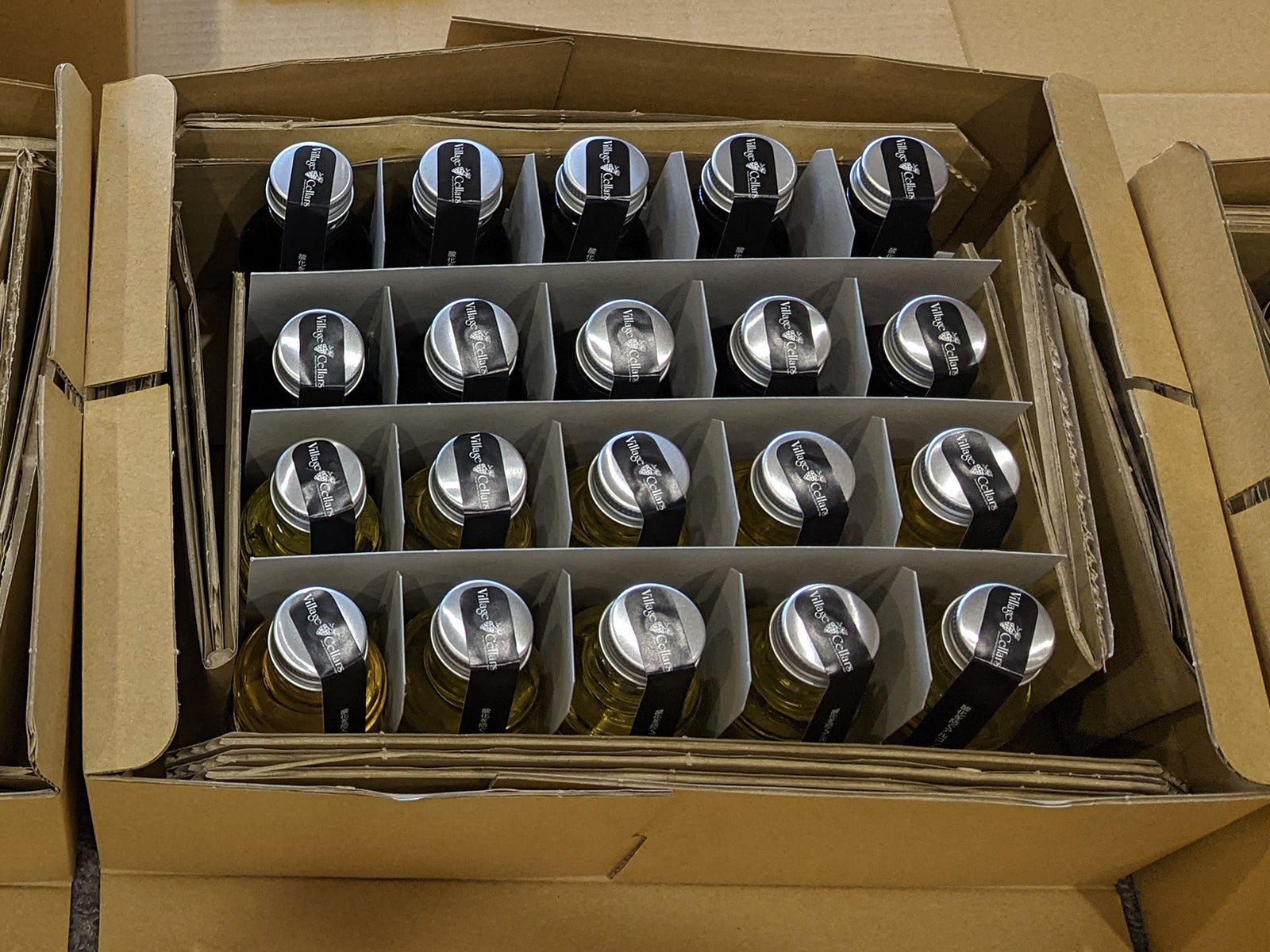 今まで小瓶セットを配送する時には割れないようにと心が痛む量のエアキャップを使ってきたのですが、今回はできる限り段ボール包装で統一することに決め、写真のようなパッケージングで送りました。数セット送りましたが一つも割れることなく届いたようなので、今回はこれで行きます。