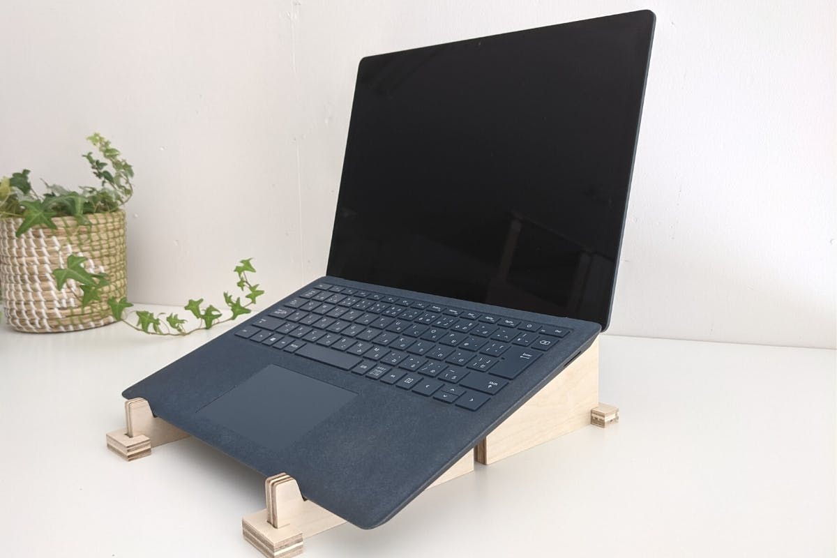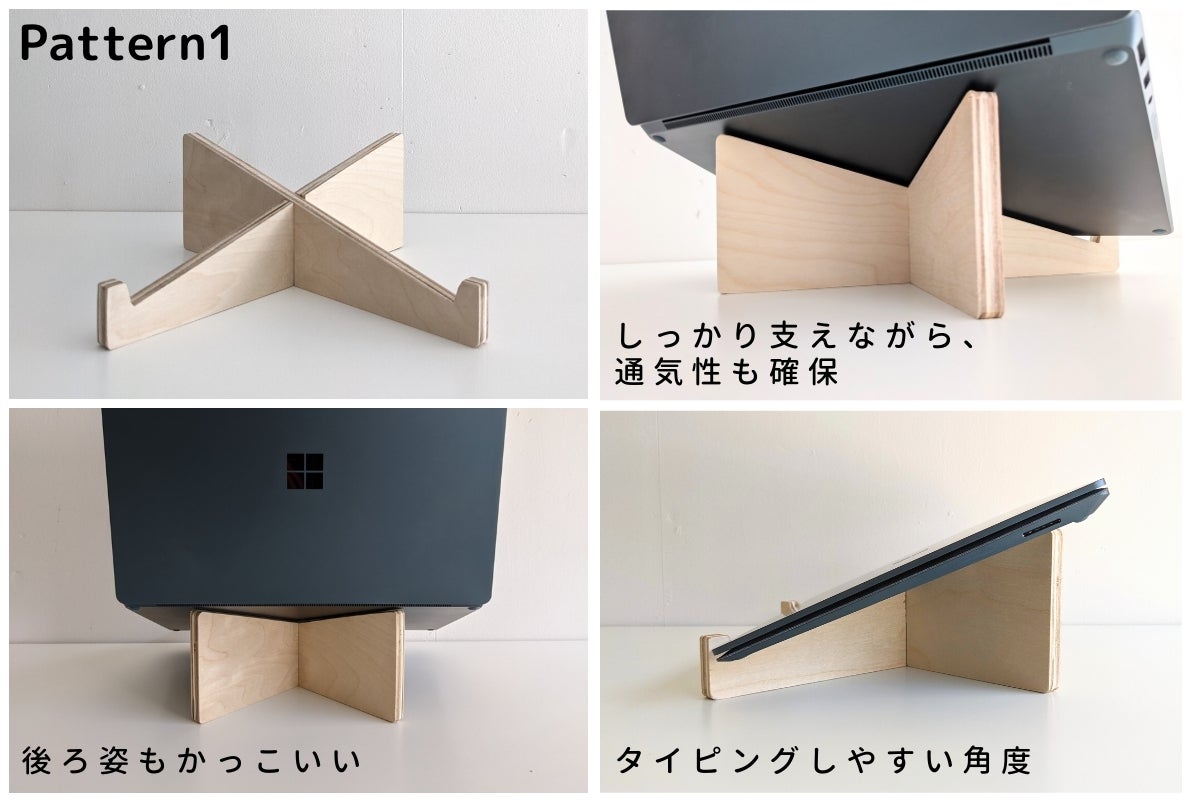 材料の板の厚さは試行錯誤を繰り返し、PCを置いた時の安定性と、持ち運びも可能。というちょうど良いバランスの厚さを選びました。