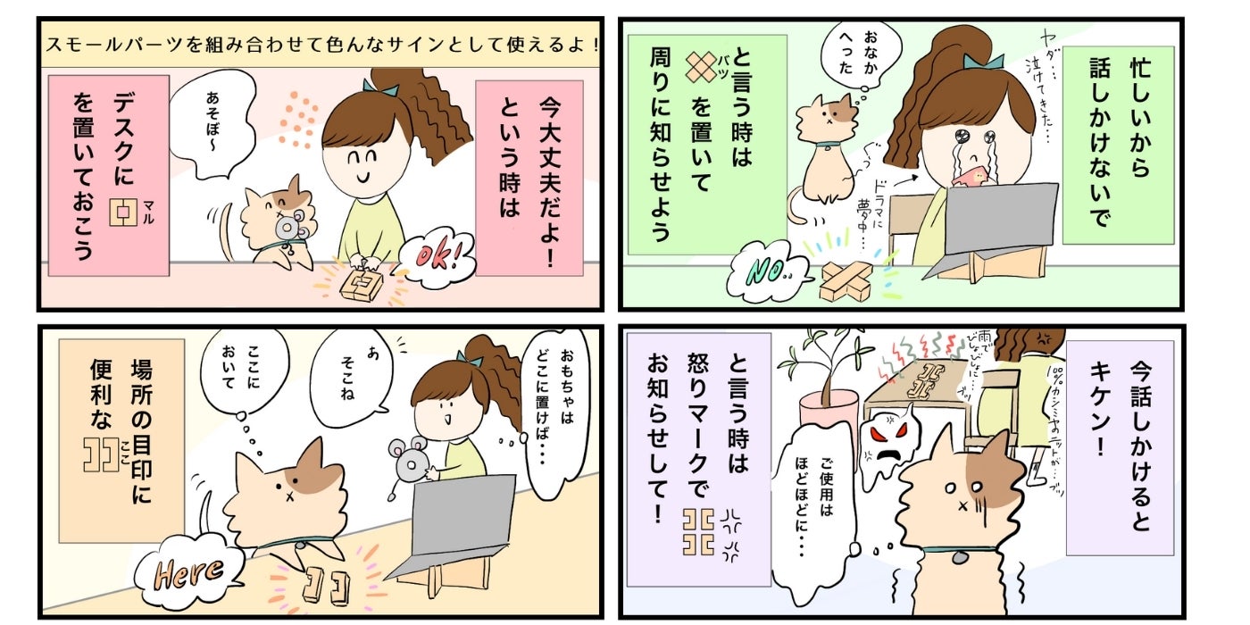 組み合わせて形を作り、デスクの上に置いておく事で周りの人へのサインとしても使えるんです!