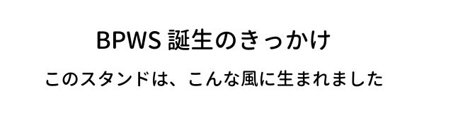 そのように、ずっと走り続けて来た中で、商品をつくる情熱が途絶えてしまい、ここ数年はプロダクト作りをお休みさせていただいておりました。今のちょっと元気がない世の中で、もう一度たくさんの方に喜んでいただけるようなプロダクトを作り、少しでも貢献したい!という強い思いから、再度プロダクト作りをスタートし、この度【BPWS】PCスタンドが誕生しました!