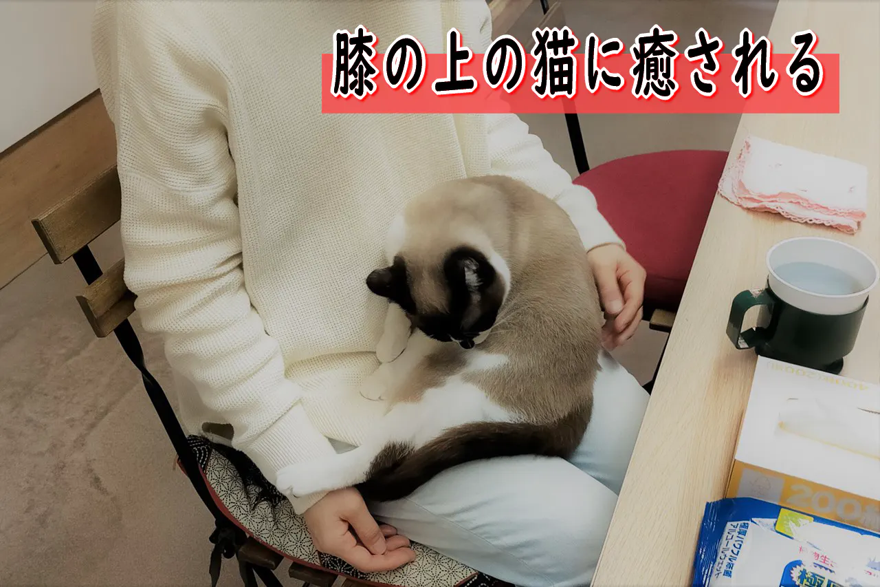つらい気分の時には、なぜか膝の上にのっておとなしく毛づくろい。