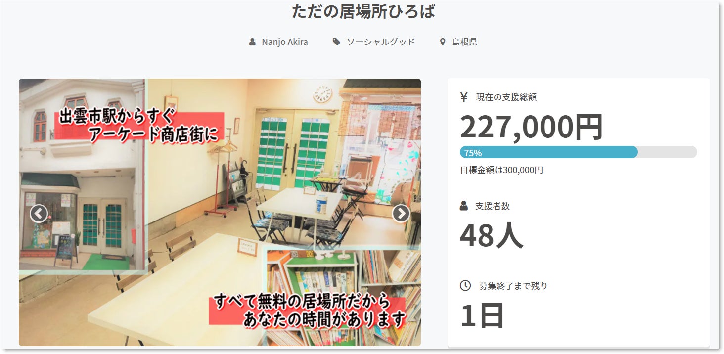 2021/10/22 10:28出雲市の無料の居場所ひろばでは、クラウドファンディングをおこなっていましたが、のこり1日となりました。これまでご支援いただきまして、ほんとうに感謝申し上げます。ただ、数人の方から、つぎのようなメールをいただきました。『支援したいけどうまくいかない』『さいごの確認ボタンで止まった』というような内容です。ほんとうに、申し訳ありません。クラウドファンディングのサイトに、ヘルプページがありました。こちらです。ヘルプページぜひ、ご確認ください。とくに、クレジット払いの場合、下記のようなヘルプページがあります。クレジット払いのヘルプこのなかに、次のような一文がありました。※ 使用できるのは有効期限100日以上のクレジットカードに限らせていただきます ぜひ、よろしくお願いいたします。 もっと見る