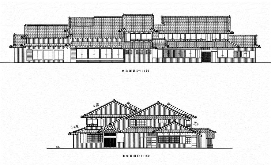 文化財指定の屋敷だけではなく、明治時代に海を埋め立て建造された屋敷庭一角にぶりを遠方に出荷するための加工施設としての燻製棟が保存されています。