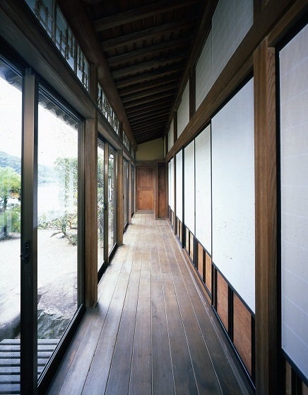 木造2階建て、金物を使用しない伝統的な工法で建てられた和風建築。浴室の天井や階段の手摺、玄関のタイル張り等に当時の洋風建築の意匠が取り入れられており、近代らしさも感じられるつくりとなっています。