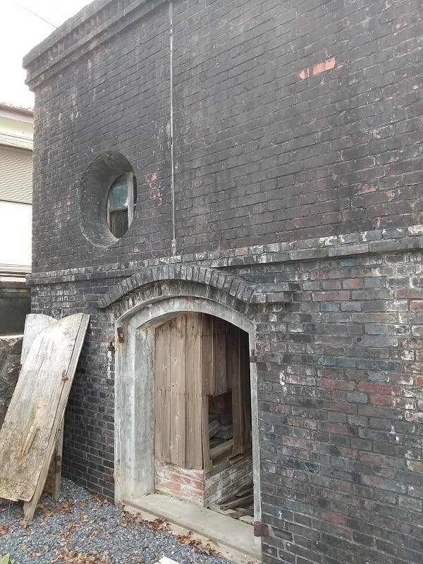 棟の下半分はカラミ煉瓦、上半分は赤煉瓦で燻製機能に特化した構造です。カラミ煉瓦は延岡市の藩主であった内藤家が大正期に運営した日平銅山において、銅の精錬滓を活用して製造された煉瓦である為、内藤家関連施設のみで利用されていたことから日高家の燻製棟に使用されていることは例外的な事例として評価が出来るものです。