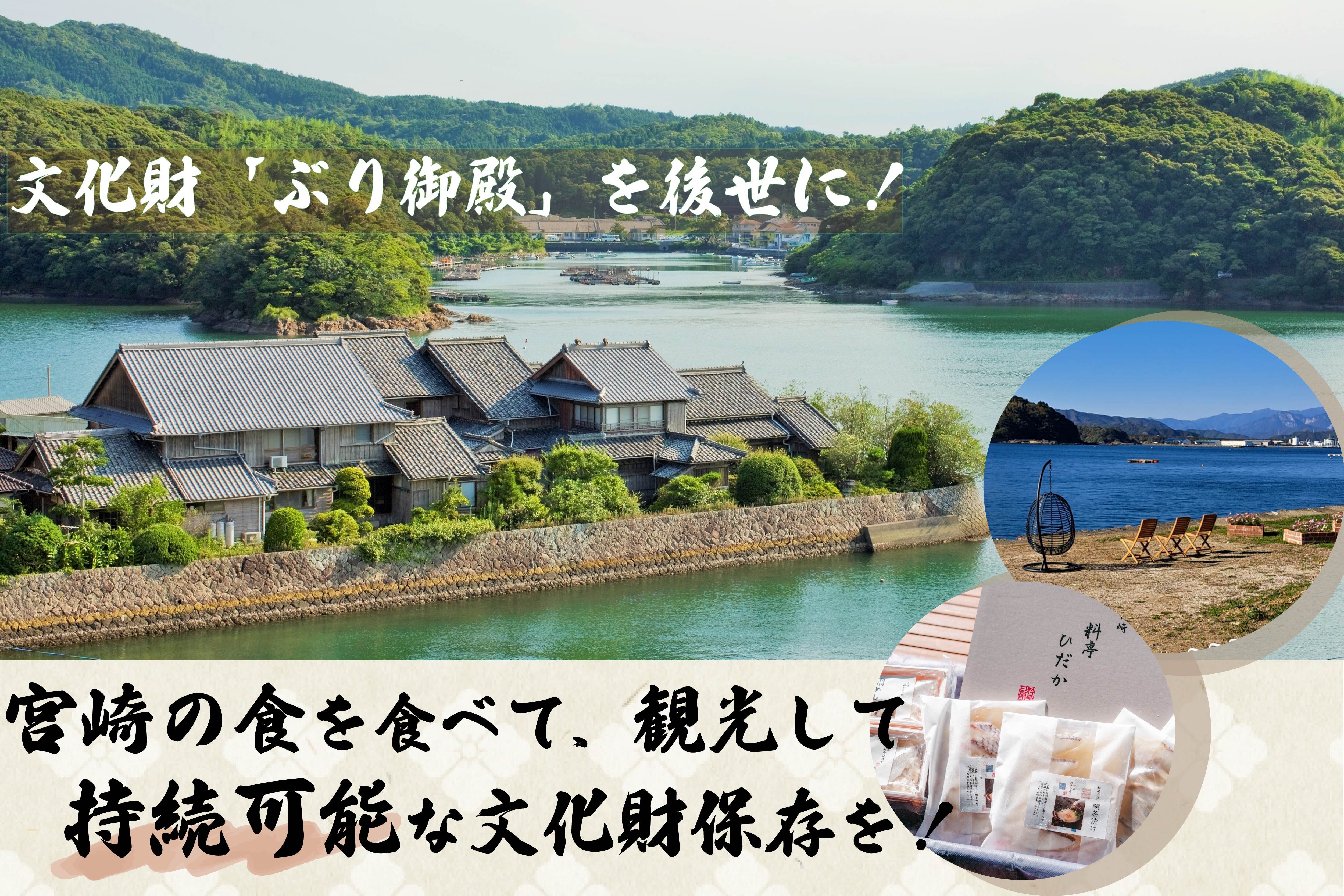 アフターコロナで、是非宮崎に残る文化財・歴史を体感しにきて頂きたい、旅行が出来ない今、ご自宅で宮崎素材を使った伝統のお料理を全国の皆様に召し上がって頂きたい、その思いで今回クラウドファンディングで料亭ひだかの商品をリターンでお送りいたします。