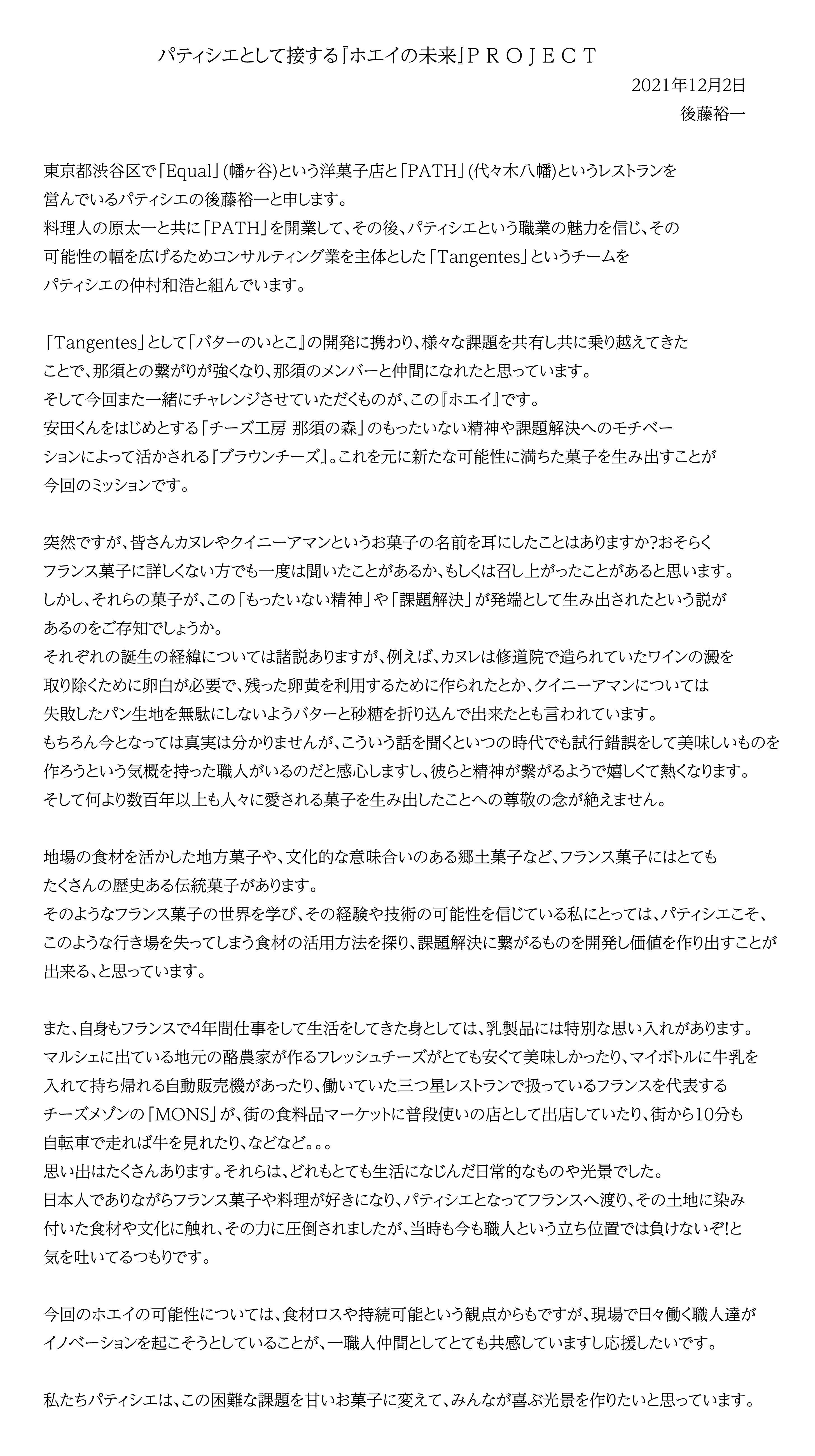 ホエイの未来プロジェクトで、一緒にホエイ活用の課題に取り組んでくださることに心強さを感じています。後藤さんお忙しい中本当にありがとうございます!