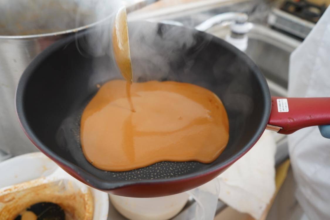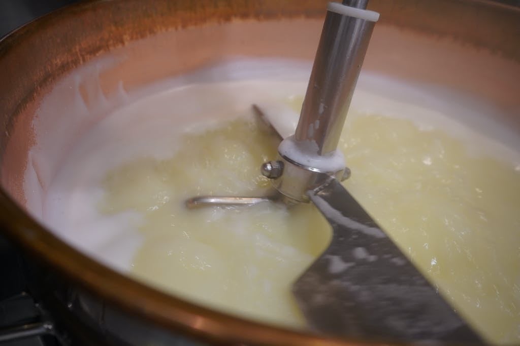 ホエイに生クリームを加え火にかけ煮詰めていき、水分を蒸発