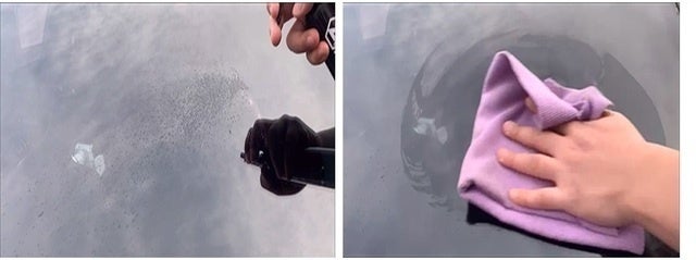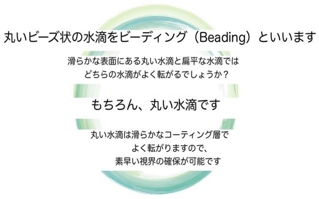 ビーディング現象が起こらない場合、広がる水の性質によって視界が遮られてしまいます。