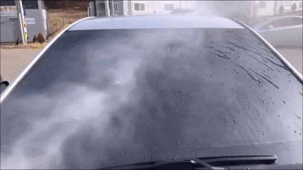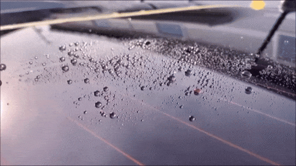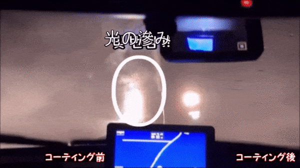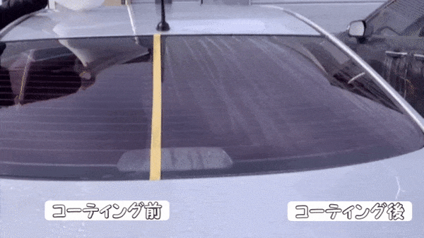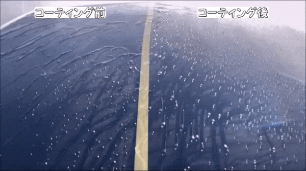 を確認できます。コーティング後、時速45キロ以上の走行時、自然に水が弾け散ります。