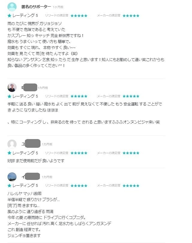 2021/10/15 07:30車のガラス部分にはこれからも【Gspray】を是非ご利用下さい。【Gspray】は今後、こちらのサイトから購入できます!https://www.hakonali.com/products雨の日の運転が楽しくなる!【GSPRAY】でシュっと拭くだけで撥水防汚効果持続4~6ヶ月 今後ともよろしくお願いします。スタッフ一同 もっと見るリターンを発送しました!