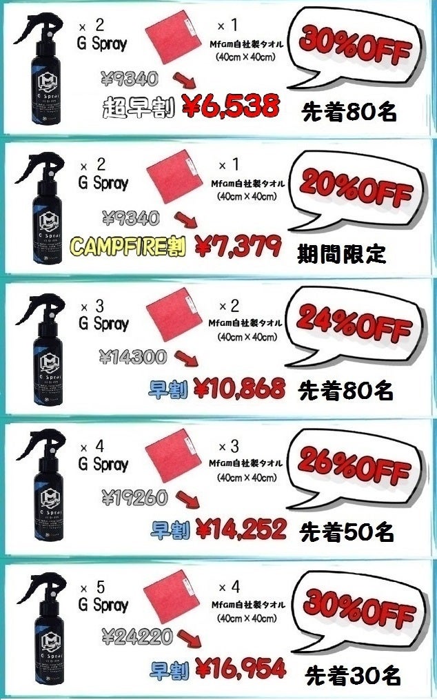 超撥水!【BBSpray+】と【Gspray】セットでCAMPFIREスタート予定