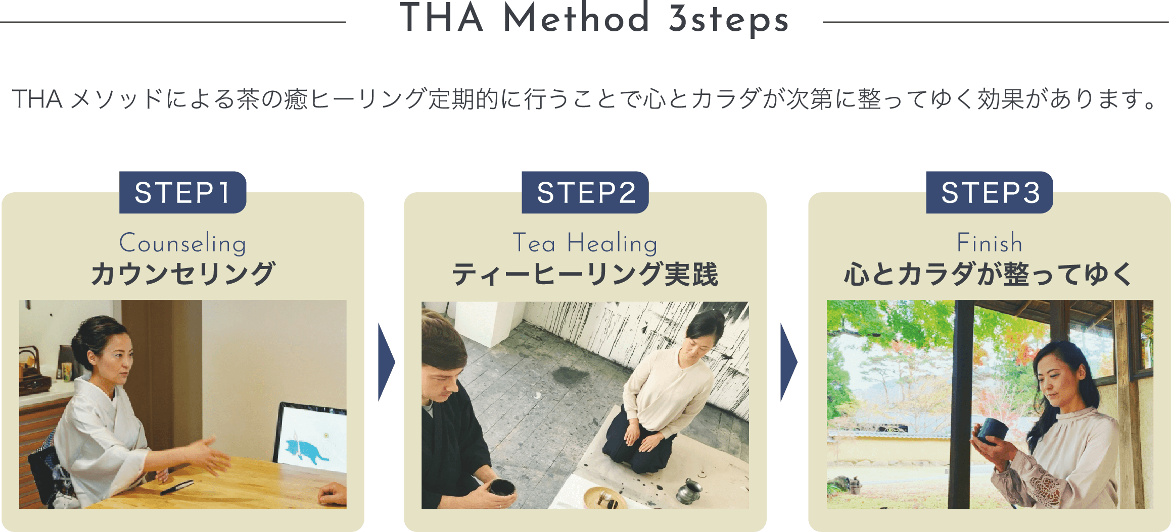 THAのメソッドである姿勢、集中、呼吸の3要素に意識を集中させ、更に抹茶そのものが持つパワーによりストレス耐性を高め、心とカラダが整ってゆきます。
