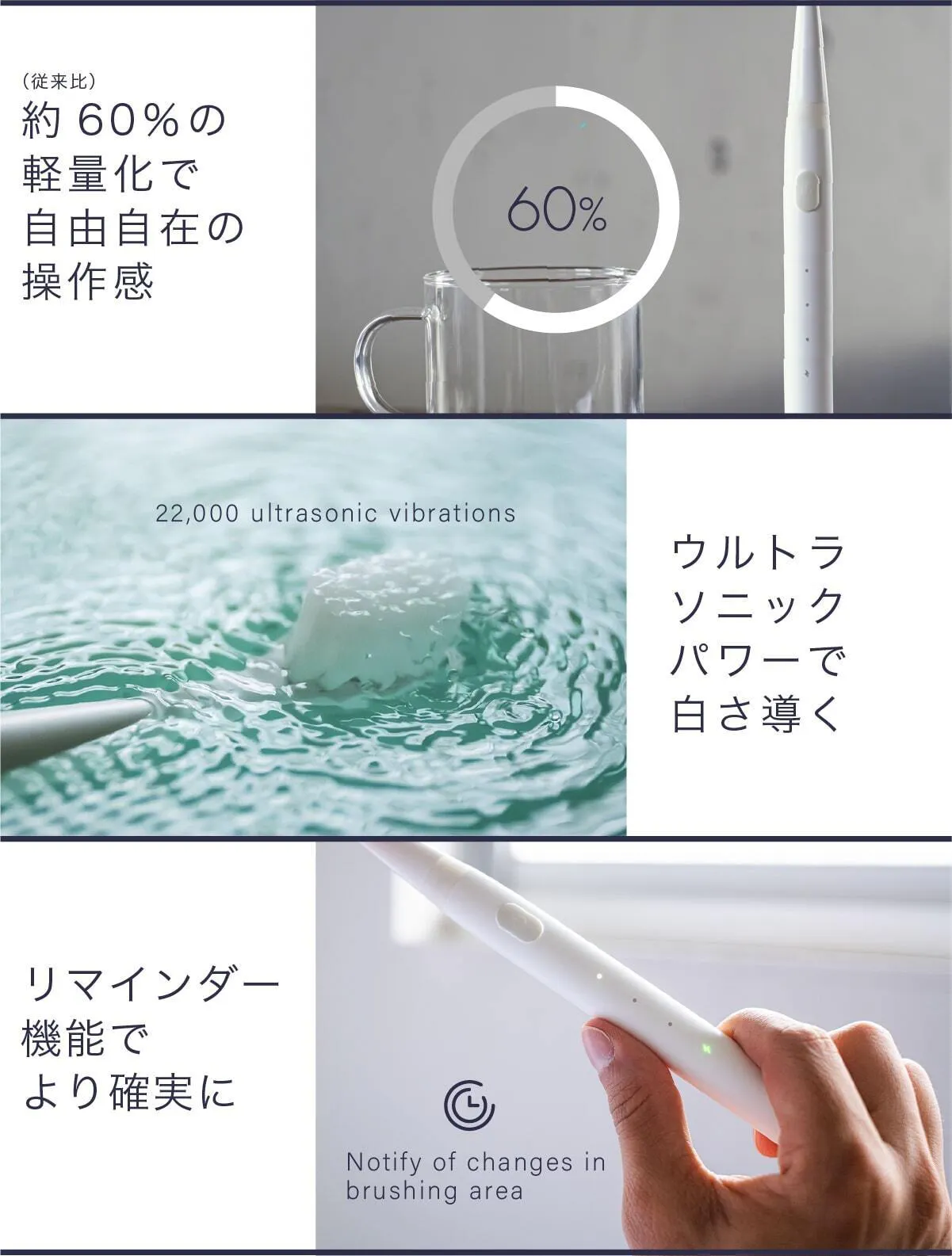 従来比約60%軽量化に成功、かつウルトラソニックパワー搭載、そしてリマインダー機能も。