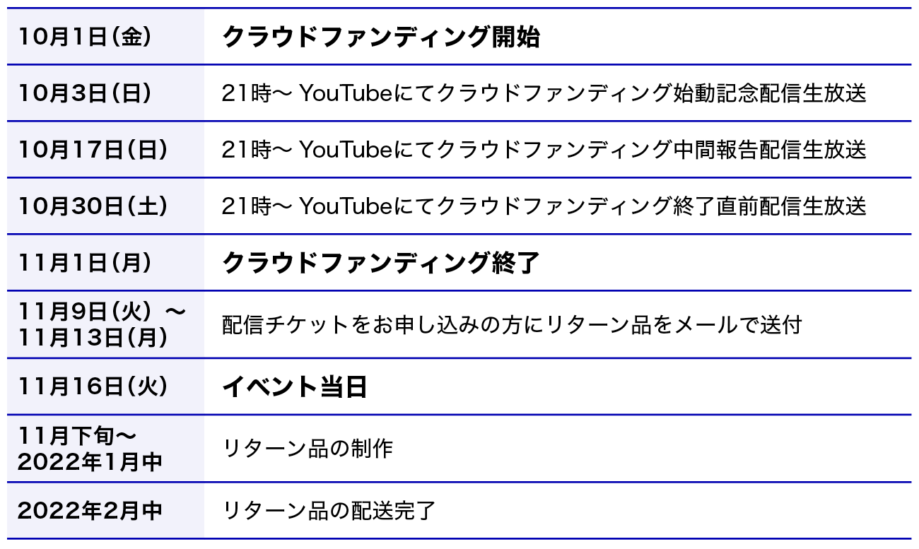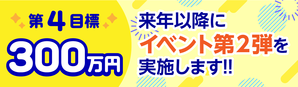 ここまでのご支援をいただきましたら、さらにレベルアップしたリアルイベント第2弾をお届けしたいです!!準備期間等がございますので、早くて来年〜再来年を予定しております。(新型コロナウイルスによる開催制限等が設けられた場合はさらに開催時期を延ばす可能性がございます。ご了承くださいませ)