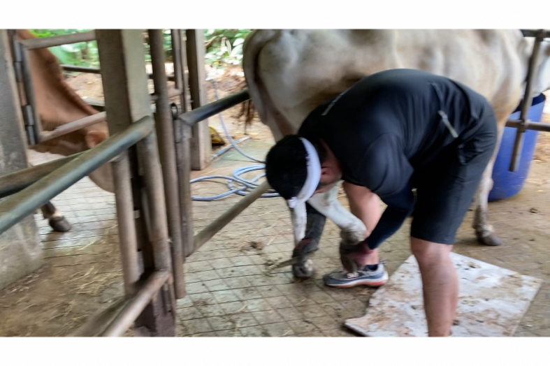 一昨年より地元、九州地区にて畜産ICT機器の営業の傍ら削蹄を行なっておりましたが、本年8月より独立専業化。削蹄師としてはまだまだ駆け出しですが日々、蹄の問題と向き合い、牛のパフォーマンス向上に努めております。