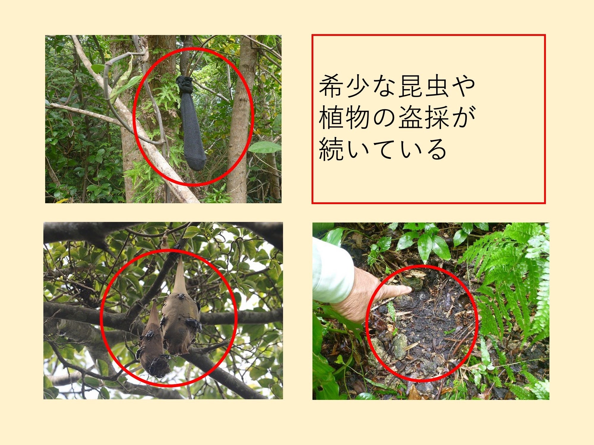 ③希少植物の盗掘、昆虫の盗採が続いている。